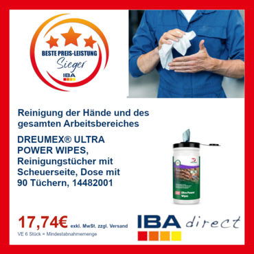 DREUMEX® ULTRA POWER WIPES, Reinigungstücher mit Scheuerseite, Dose mit 90 Tüchern, 14482001"