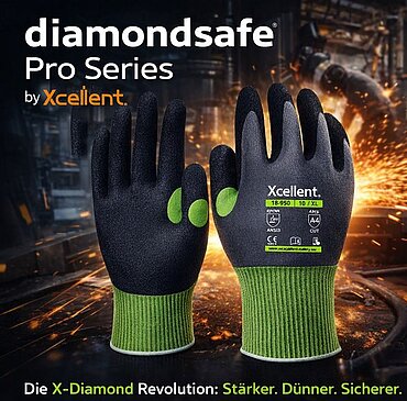 Wählen Sie die perfekte Beschichtung für Ihre spezifischen Anforderungen: 18-950 diamondsafe-Pro N sandige Nitrilbeschichtung - Extrem griffsicher, ideal für ölige und mechanische Arbeiten. Touchscreen-Funktion. EN388: 4X42D 18-951 diamondsafe-Pro PU X-Tech PU Beschichtung - Maximale Taktilität und Fingerspitzengefühl wie eine zweite Haut. Touchscreen-Funktion. EN388: 4X42D Termin mit IBA Immer Bestens Ausgerüstet vereinbaren und sofort profitieren. https://www.ibadirect.eu/Markenshop/XCellent-Schutzhandschuhe/ |